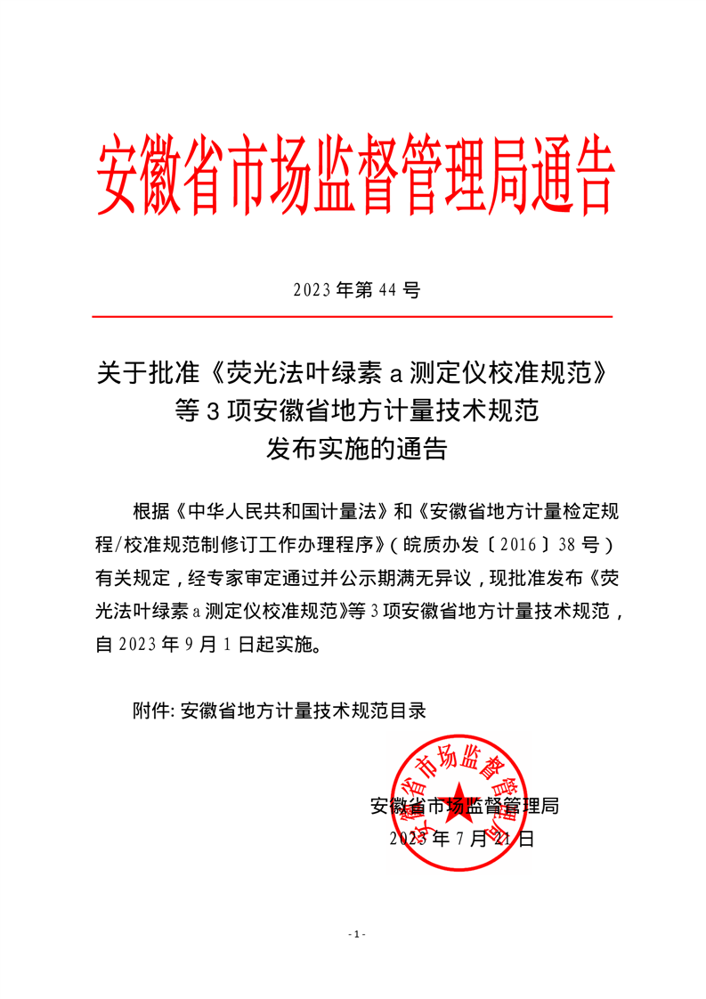 以上為安徽省市場監督管理局關于批準《熒光法葉綠素a測定儀校準規范》等3項安徽省地方計量技術規范發布實施的通告(2023年第44號)的檢測服務介紹,如有其他疑問可聯系在線工程師!
