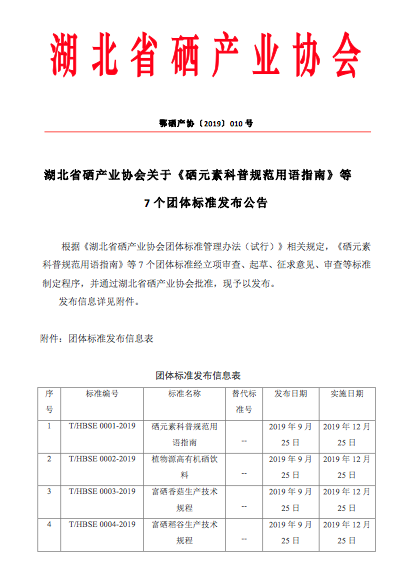 | 1 | T/HBSE 0001-2019 | 硒元素科普規范用語指南 |