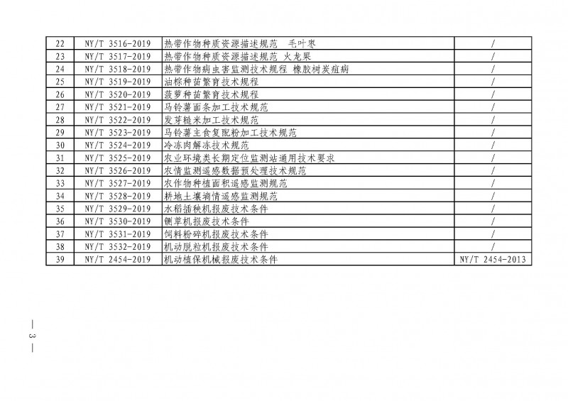 | 10 | NY/T 3531-2019 | 飼料粉碎機報廢技術條件 |
