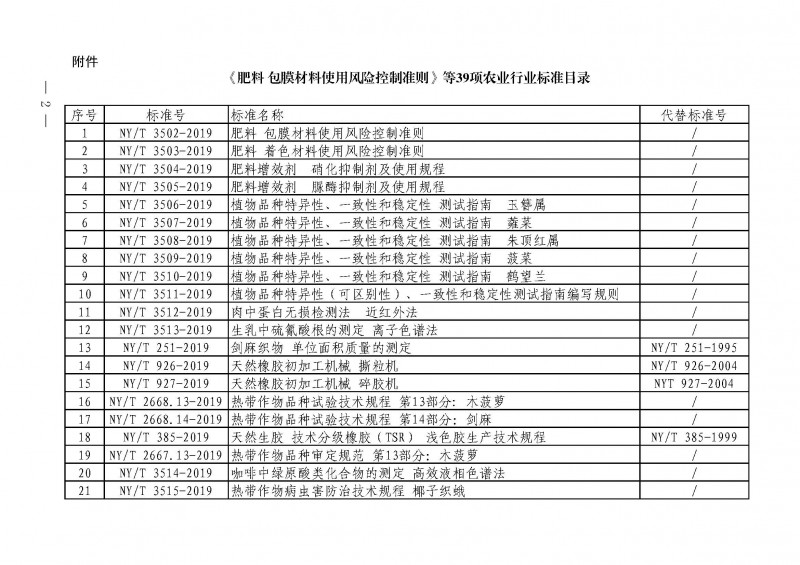 | 1 | NY/T 3504-2019 | 肥料增效劑 硝化抑制劑及使用規程 |