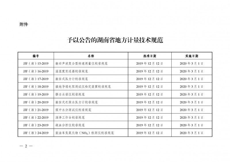 湖南省市場監督管理局關于發布一批湖南省地方計量技術規范的公告(2019年第22號)