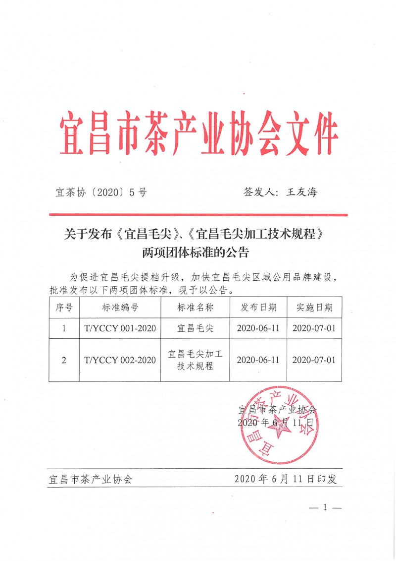 T/YCCY 002-2020《宜昌毛尖加工技術規程》