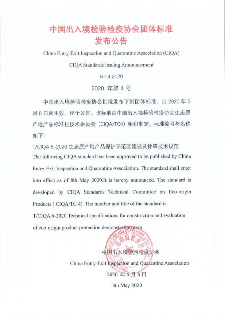 T/CIQA 6-2020《生態(tài)原產(chǎn)地產(chǎn)品保護示范區(qū)建設(shè)及評審技術(shù)規(guī)范》