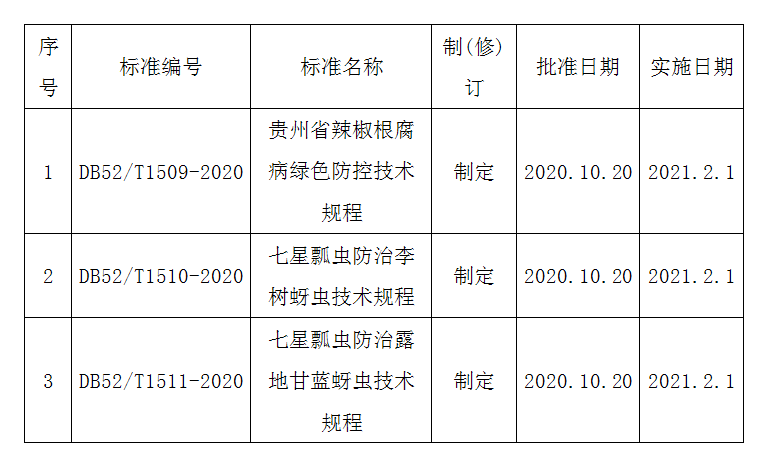 本文關鍵詞:貴州省市場監督管理局關于批準發布《貴州省辣椒根腐病綠色防控技術規程》等3項地方標準的公告,標準公告 本文鏈接:http://m.eshzyl.cn/jcxm/bzgg/2025-02-14/15859.html