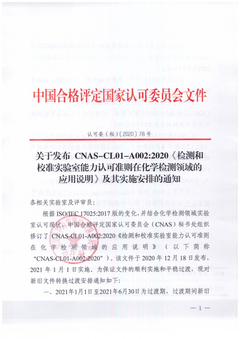 以上為中國合格評(píng)定國家認(rèn)可委員會(huì)關(guān)于CNAS-CL01-A002 化學(xué)應(yīng)用說明修訂發(fā)布通知(認(rèn)可委(秘)〔2020〕78號(hào))的檢測(cè)服務(wù)介紹,如有其他疑問可聯(lián)系在線工程師!