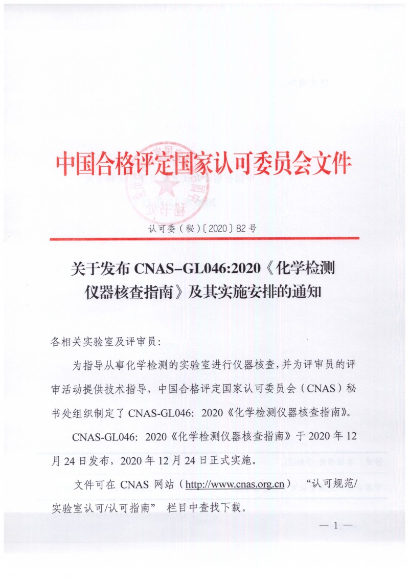 以上為中國合格評(píng)定國家認(rèn)可委員會(huì)關(guān)于CNAS-GL046:2020《化學(xué)檢測儀器核查指南》發(fā)布實(shí)施通知(認(rèn)可委(秘)〔2020〕82號(hào))的檢測服務(wù)介紹,如有其他疑問可聯(lián)系在線工程師!