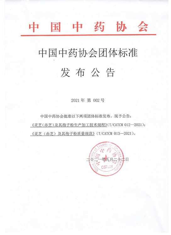 T/CATCM 012-2021 靈芝(赤芝)及其孢子粉生產加工技術規程 T/CATCM 013-2021 靈芝(赤芝)及其孢子粉質量規范