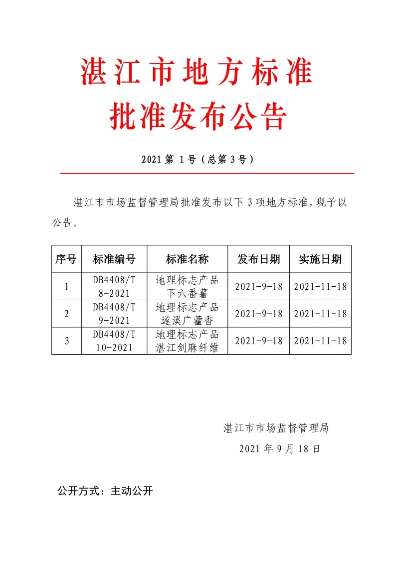備注:實際標準文本發布后《地理標志產品 下六番薯》與《地理標志產品 湛江劍麻纖維》標準編號置換。