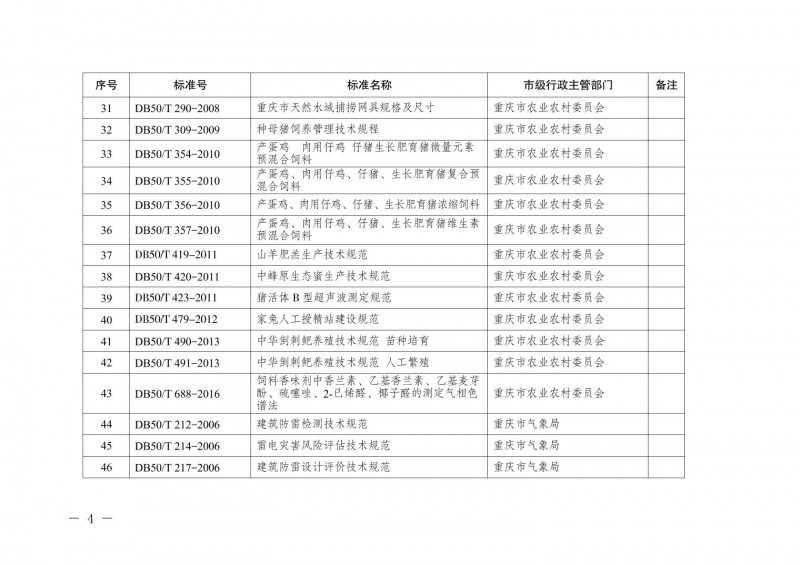 | 21 | DB50/T 419-2011 | 山羊肥羔生產(chǎn)技木規(guī)范 |
