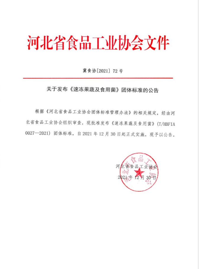 以上為河北省食品工業(yè)協(xié)會關于發(fā)布《速凍果蔬及食用菌》團體標準的公告(冀食協(xié)【2021】72號)的檢測服務介紹,如有其他疑問可聯(lián)系在線工程師!