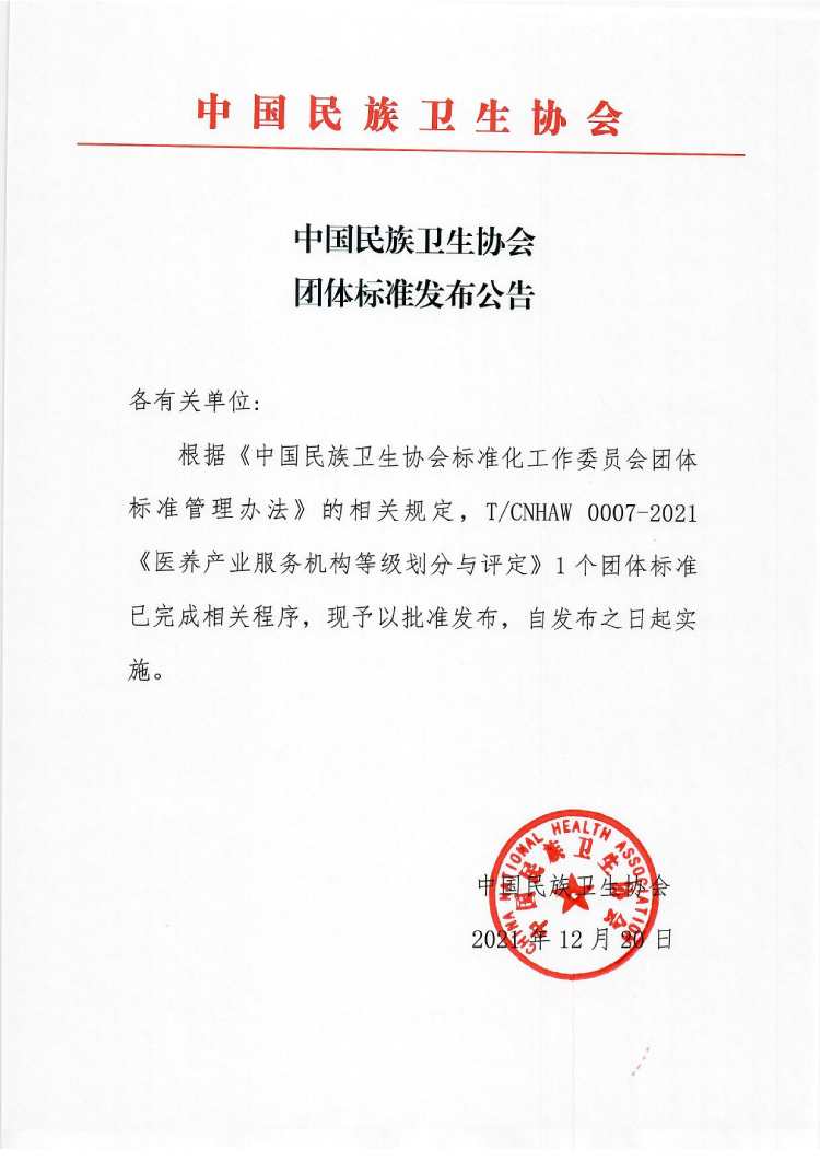 以上為中國民族衛生協會發布《醫養產業服務機構等級劃分與評定》團體標準的公告的檢測服務介紹,如有其他疑問可聯系在線工程師!