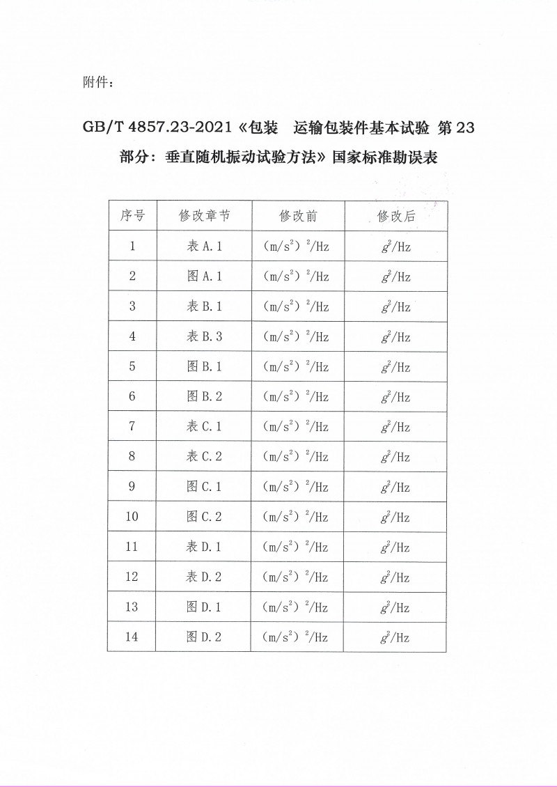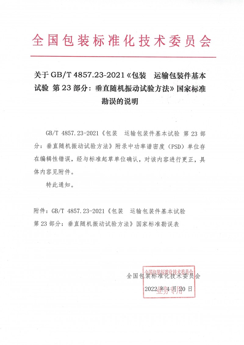 以上為全國包裝標準化技術(shù)委員會關(guān)于GB T4857.23-2021《包裝 運輸包裝件基本實驗 第23部分》國標勘誤說明的檢測服務(wù)介紹,如有其他疑問可聯(lián)系在線工程師!