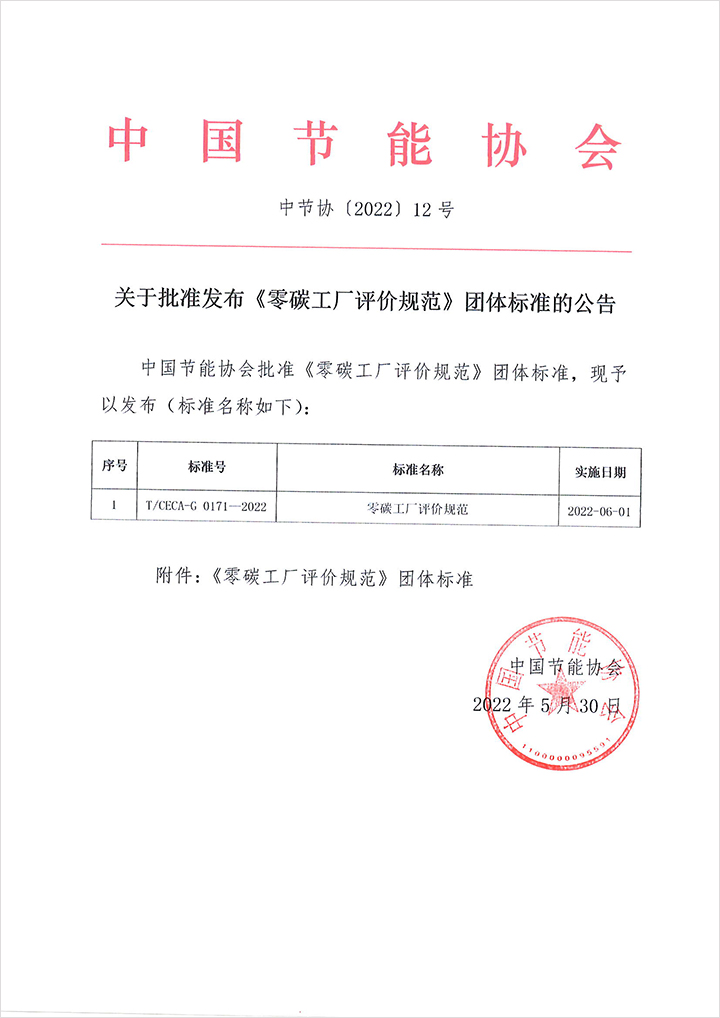 關于批準發布《零碳工廠評價規范》團體標準的公告.PDF