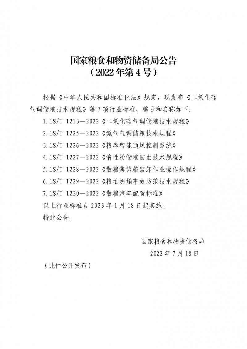 | 7 | LS/T 1230-2022 散糧汽車配置標準 |