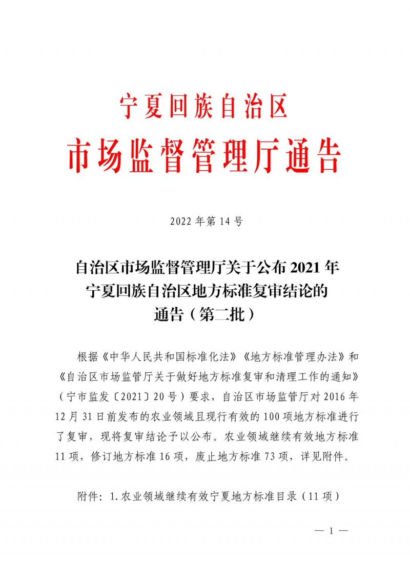 以上為寧夏回族自治區市場監督管理廳關于公布2021年寧夏回族自治區地方標準復審結論的 通告(第二批)(2022年第14號)的檢測服務介紹,如有其他疑問可聯系在線工程師!