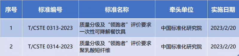 根據《中國技術經濟學會團體標準管理辦法》的有關規定,中國技術經濟學會批準《質量分級及“領跑者”評價要求 一次性可降解餐飲具》等兩項團體標準。現予以發布,詳細信息見下表: