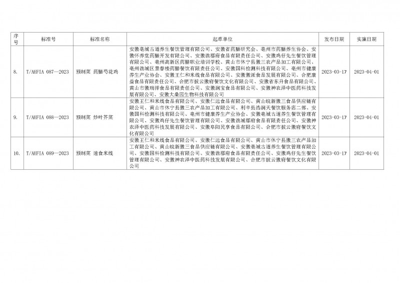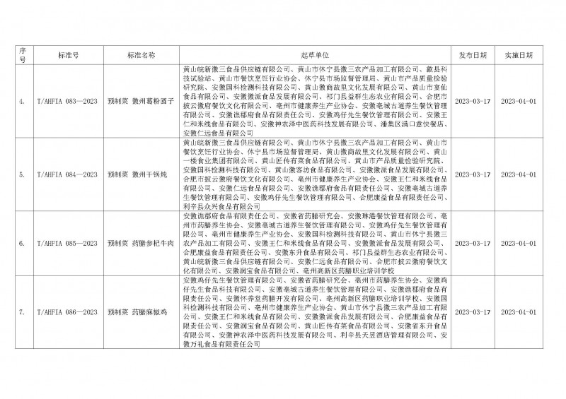 T/AHFIA 080-2023 預制菜 徽州臭鱖魚 T/AHFIA 081-2023 預制菜 徽州刀板香 T/AHFIA 082-2023 預制菜 徽州毛豆腐 T/AHFIA 083-2023 預制菜 徽州葛粉圓子 T/AHFIA 084-2023 預制菜 徽州干鍋燉 T/AHFIA 085-2023 預制菜 藥膳參杞牛肉 T/AHFIA 086-2023 預制菜 藥膳麻椒雞 T/AHFIA 087-2023 預制菜 藥膳芍花雞 T/AHFIA 088-2023 預制菜 炒葉芥菜 T/AHFIA 089-2023 預制菜 速食米線