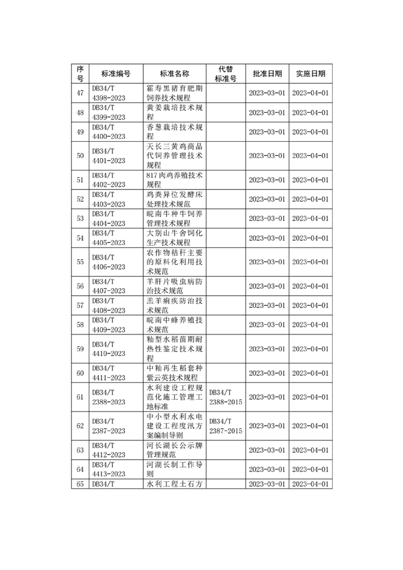 | DB34/T 2388-2023 | 水利建設工程規范化施工管理工地標準 | 2023-03-01 | 2023-04-01 | |