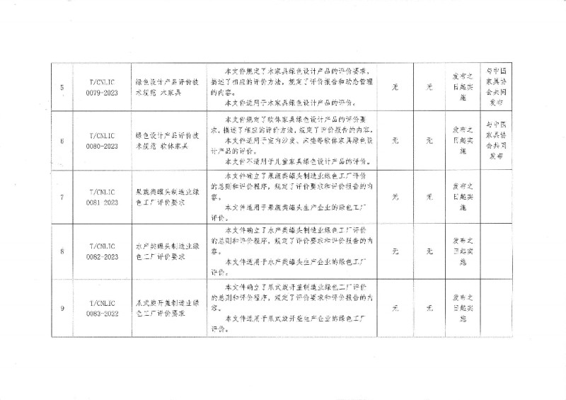 T/CNLIC 0078-2023 食具消毒柜能效限值定及能效等級(jí) T/CNLIC 0081-2023 果蔬類罐頭制造業(yè)綠色工廠評(píng)價(jià)要求 T/CNLIC 0082-2023 水產(chǎn)類罐頭制造業(yè)綠色工廠評(píng)價(jià)要求 T/CNLIC 0083-2023 爪式旋開蓋制造業(yè)綠色工廠評(píng)價(jià)要求