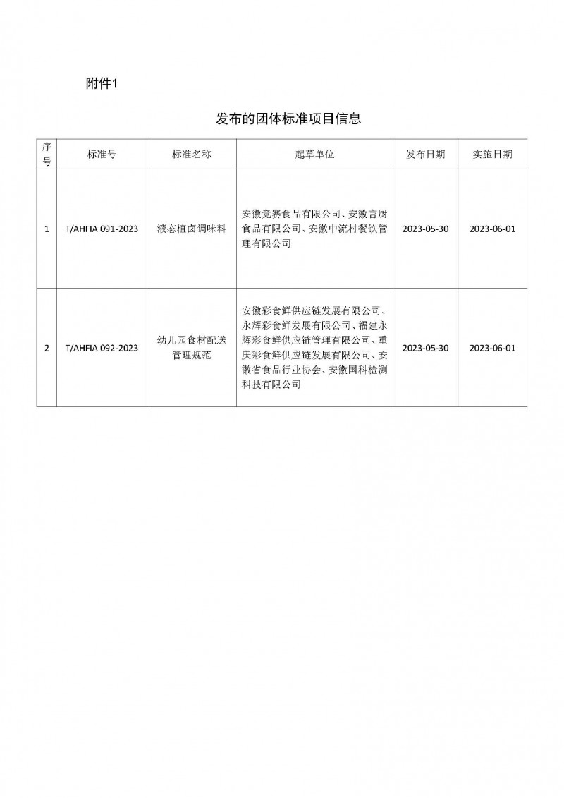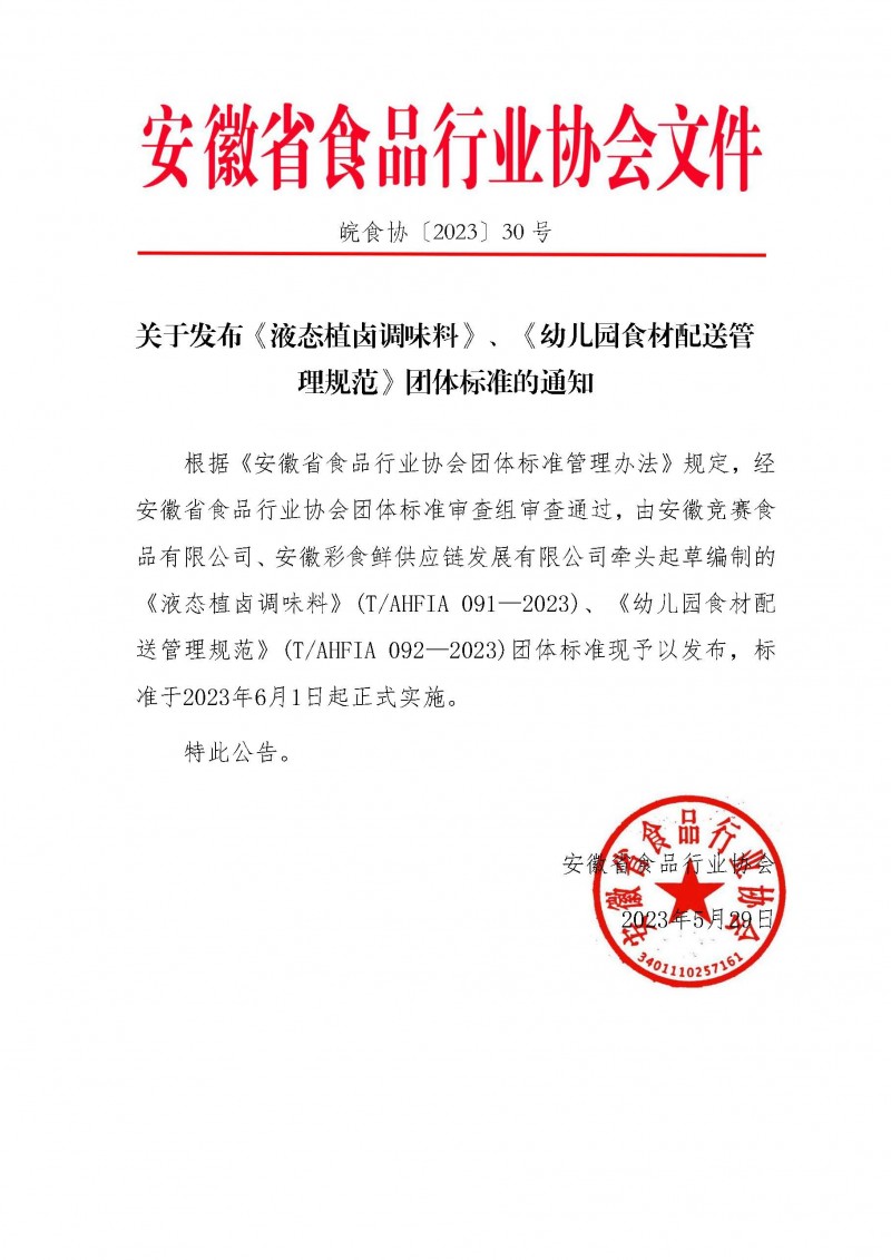 T/AHFIA 091-2023 液態植鹵調味料 T/AHFIA 092-2023 幼兒園食材配送管理規范