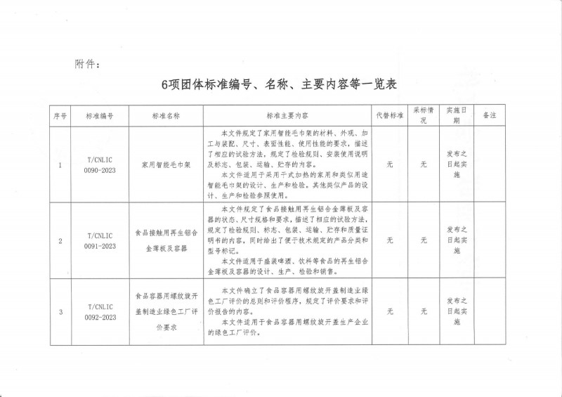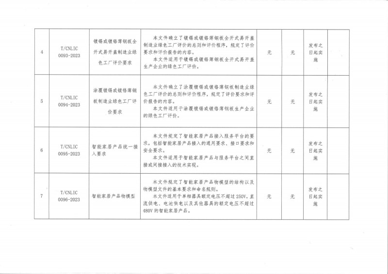T/CNLIC 0091-2023 食品接觸用再生鋁合金薄板及容器 T/CNLIC 0092-2023 食品容器用螺紋旋開蓋制造業(yè)綠色工廠評價要求 T/CNLIC 0093-2023 鍍錫或鍍鉻薄鋼板全開式易開蓋制造業(yè)綠色工廠評價要求 T/CNLIC 0094-2023 涂覆鍍錫或鍍鉻薄鋼板制造業(yè)綠色工廠評價要求 T/CNLIC 0100-2023 使用或不使用化學阻垢劑的飲用水處理裝置效能評價規(guī)范