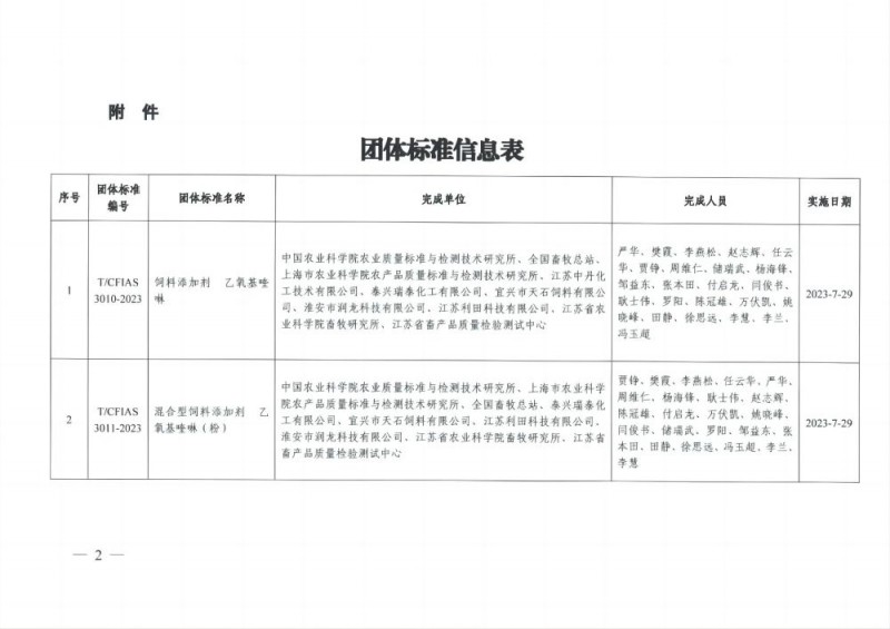 T/CFIAS 3010-2023 飼料添加劑 乙氧基喹啉 T/CFIAS 3011-2023 混合型飼料添加劑 乙氧基喹啉(粉)
