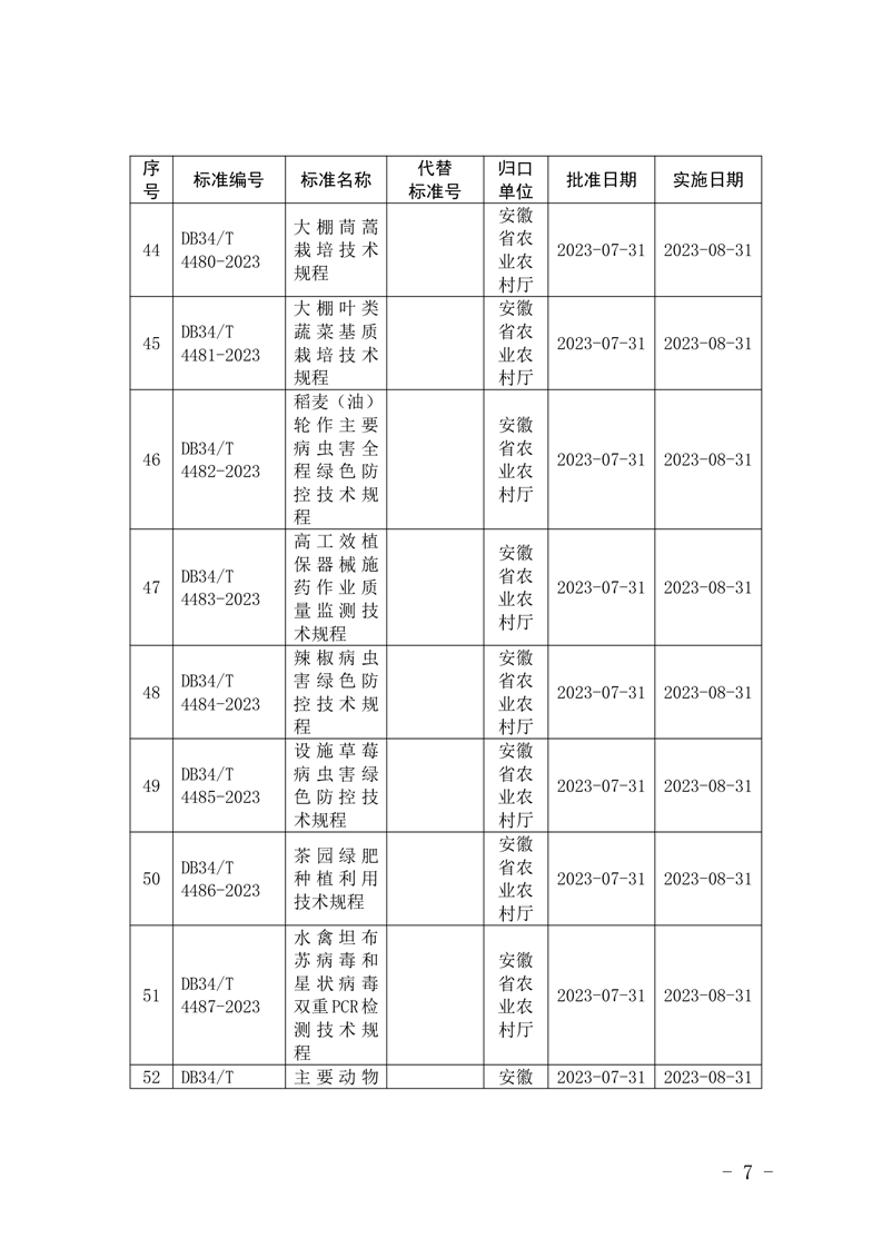 | DB34/T 4481-2023 | 大棚葉類蔬菜基質(zhì)栽培技術(shù)規(guī)程 | 2023-07-31 | 2023-08-31 | |