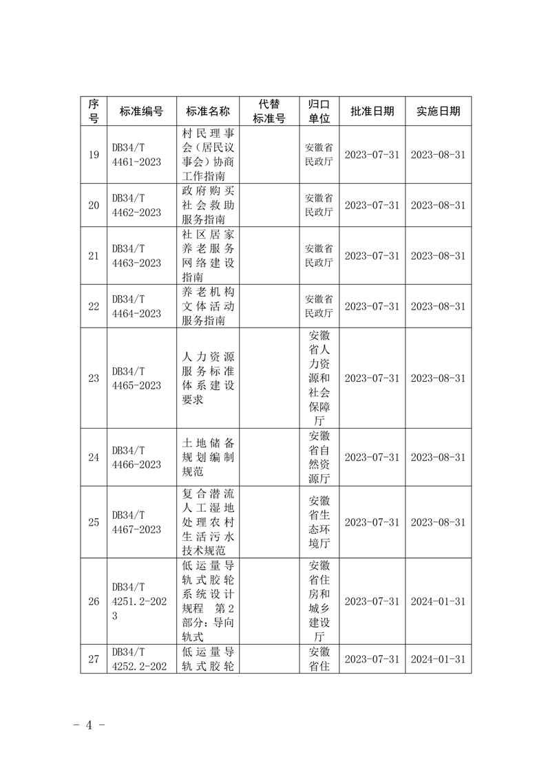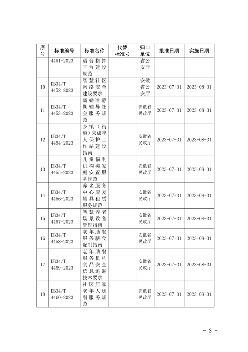 | DB34/T 4460-2023 | 社區(qū)居家老年人送餐服務(wù)規(guī)范 | 2023-07-31 | 2023-08-31 | |