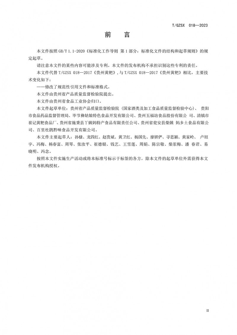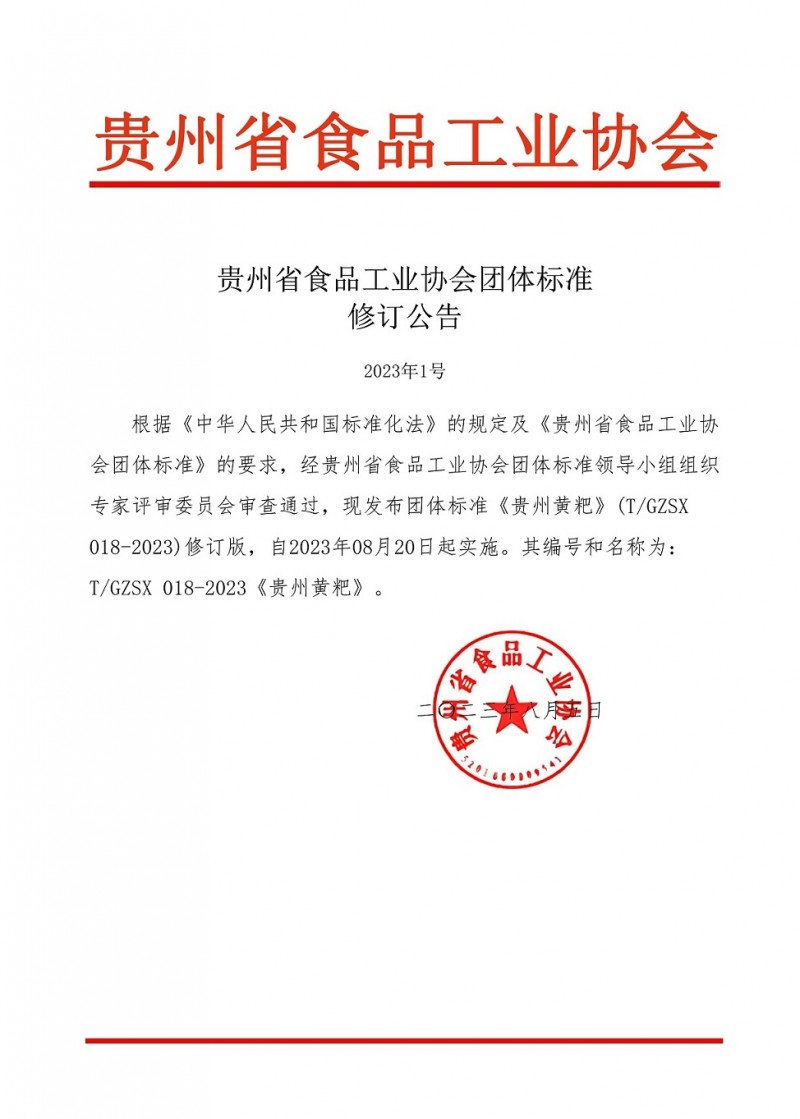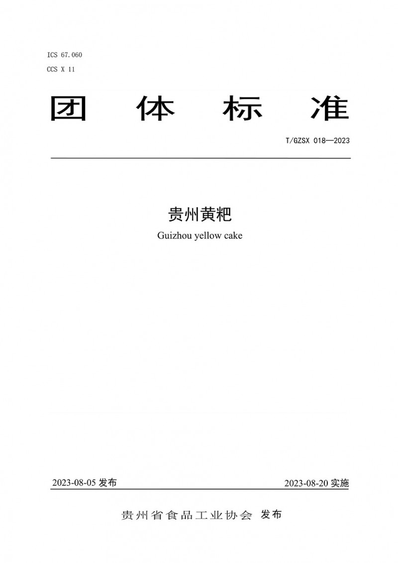 貴州省食品工業(yè)協(xié)會(huì)團(tuán)體標(biāo)準(zhǔn)T/GZSX018-2023《貴州黃粑》 修訂公告(2023年第1號(hào))