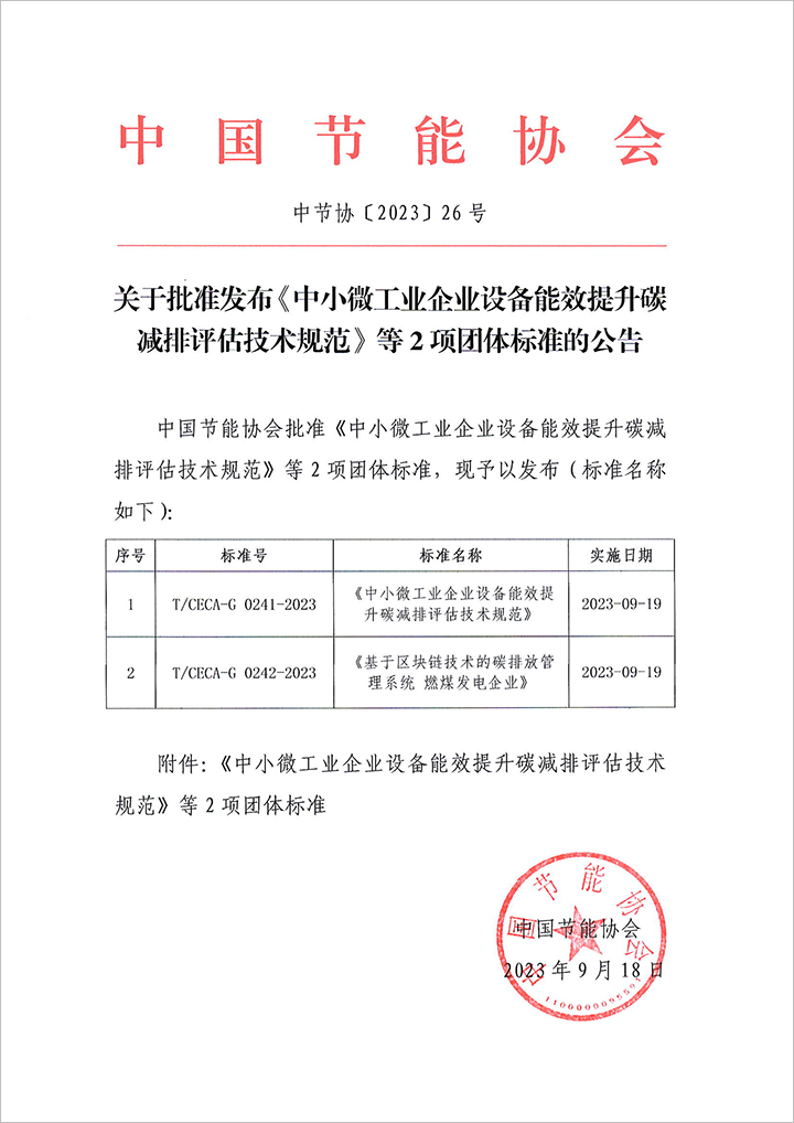 關(guān)于批準(zhǔn)發(fā)布《中小微工業(yè)企業(yè)設(shè)備能效提升碳減排評估技術(shù)規(guī)范》等2項(xiàng)團(tuán)體標(biāo)準(zhǔn)的公告.PDF