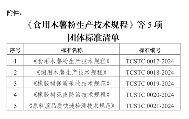 附件:《食用木薯粉生產(chǎn)技術(shù)規(guī)程》等5項(xiàng)團(tuán)體標(biāo)準(zhǔn)清單